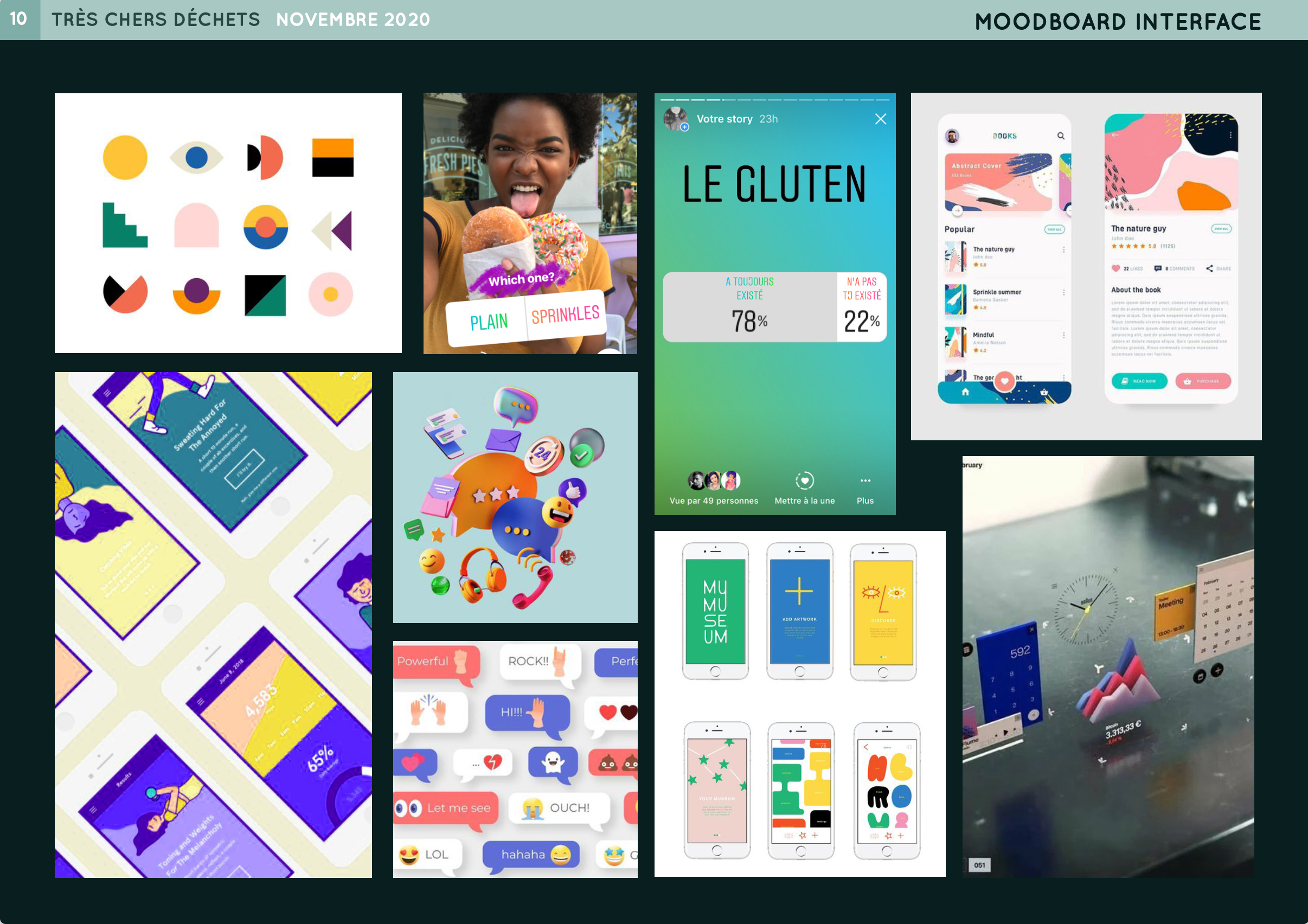 Moodboard de références • Illustrations du parcours-utilisateur • Illustration de la couverture du dossier • Mock up